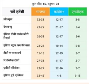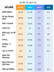 उत्तराखंड की बात करें तो चुनावी सर्वे एजेंसी ETG के एग्जिट पोल में बीजेपी 41.4 प्रतिशत वोट शेयर के साथ सबसे आगे हैं. दूसरे नंबर पर 37.2 प्रतिशत के साथ कांग्रेस तो 2.6 प्रतिशत यूकेडी नजर आ रही है. खास बात यह है कि इस चुनाव के एग्जिट पोल में आम आदमी पार्टी 7.4 प्रतिशत वोट शेयर के साथ तीसरे नंबर पर काबिज होती दिखाई दे रही है. वहीं सीटों की बात करें तो एग्जिट पोल में बीजेपी को 37-40, कांग्रेस को 29-32, आप को 1 और यूकेडी को भी एक सीट मिलती नजर आ रही है.