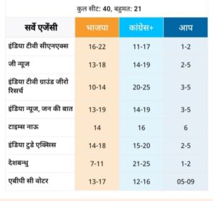 गोवा में इस बार भी किसी दल को स्पष्ट बहुमत नहीं गोवा में बीजेपी और कांग्रेस में कड़ी टक्कर होने की बात कही जा रही है. सर्वे एजेंसी ETG के आंकड़ों के अनुसार, गोवा में बीजेपी को 34.1 प्रतिशत, कांग्रेस को 30.9 प्रतिशत, आप को 13 प्रतिशत वोट शेयर और एमजीपी गठबंधन को 11.2 फीसदी वोट शेयर मिलने का अनुमान है. सीटों की बात करें तो बीजेपी को 17-20, कांग्रेस को 15-17, आप को 1-2 और एमजीपी गठबंधन को 3-4 सीटें हासिल होती दिख रही है. हालांकि गोवा में इस बार भी किसी दल को स्पष्ट बहुमत नहीं मिलता नजर आ रहा है. इसका मतलब यह कि गोवा में एक बार फिर विधायकों की हॉर्स ट्रेडिंग जबर्दस्त तरीके से होगी.