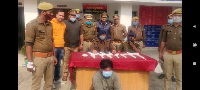 पुलिस गिरफ्त में दिख रहे इस आरोपी का नाम अमित उर्फ सोनू है यह दरगवा अकबरपुर का रहने वाला है पहले भी ये शराब और गैंगस्टर धाराओं में जेल जा चुका है । मूसानगर थाना प्रभारी और स्वाट पुलिस टीम ने चेकिंग के दौरान कृपालपुर से इसे आठ अवैध असलहों और 4 जिंदा कारतूस के साथ गिरफ्तार कर जेल भेज दिया है पुलिस अधीक्षक ने बड़ी कार्यवाही करने वाली पुलिस टीम को इनाम देने की घोषणा की है।