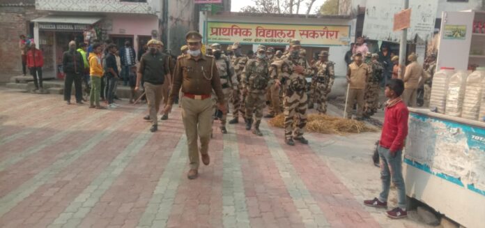 पुलिस, पीएसी एवं अर्धसैनिक बल के जवानों के साथ अधिकारियों ने मतदान केंद्रों का किया निरीक्षण