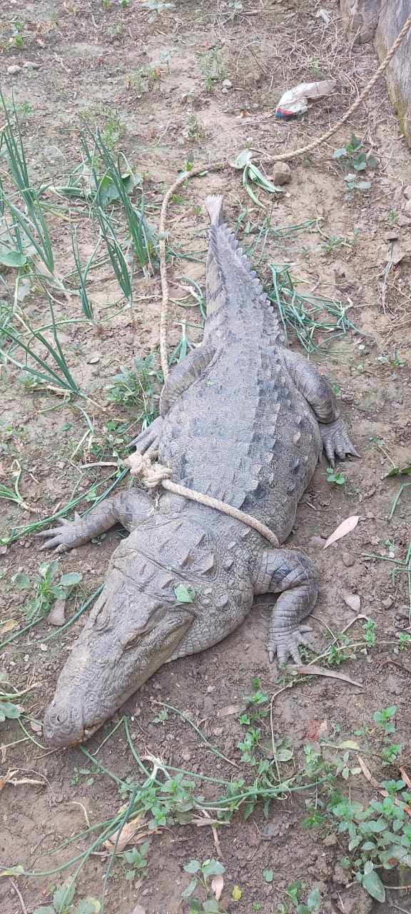 प्राप्त जानकारी के अनुसार सोमवार मंगलवार की मध्य रात्रि एक ग्रामीण को तालाब के बाहर मगरमच्छ दिखाई दिया। मगरमच्छ देखने के बाद ग्रामीणों ने गुहार लगाई। हल्ला शोरगुल सुनकर भारी संख्या में ग्रामीण मौके पर इकट्ठा हो गए। ग्रामीणों ने तालाब से मगरमच्छ पकड़ वाये जाने के लिए प्रधान को भी जानकारी दी। ग्राम प्रधान समेत अन्य ग्रामीणों ने तालाब मे मगरमच्छ होने की जानकारी 112 नंंबर डायल पुलिस को दी। जानकारी पाकर पीआरबी पुलिस मौके पर पहुंची। पुलिस टीम ने पहले तो वन विभाग से संपर्क करने का प्रयास किया। लेकिन संपर्क न होने के चलते चौकी प्रभारी देवगांव मनीष चतुर्वेदी को बताया। जानकारी मिलने के बाद चौकी प्रभारी अपने हमराही सिपाही मनोज कुमार, अशोक व अरविंद के साथ मौके पर पहुंचकर जोखिम भरा काम करते हुए रस्सी में फंदा बनाकर कड़ी मशक्कत के बाद मगरमच्छ को फंदे में फसाकर पेड़ से बंधवा दिया। ग्राम प्रधान मोहम्मद तौफीक का कहना है कि और मगरमच्छ होने की आशंका से ग्रामीणों में भय व्याप्त है। तालाबों में चावल डालकर जांच कराना जरूरी है सबसेे बड़ी बात तो यह है कि उसी तालाब सेे सटा हुआ एक प्राथमिक विद्यालय भी है जहां छोटे-छोटे बच्चे तालाब के किनारे से ही गुजरते हुए विद्यालय को जाते है ऐसे मेंं अब उन नौनिहालों के जान का संकट भी पैदा हो गया है। यदि जिम्मेदार अधिकारी कर्मचारी समय से नहीं चेते तो बड़ा हादसा घटित हो सकता है।