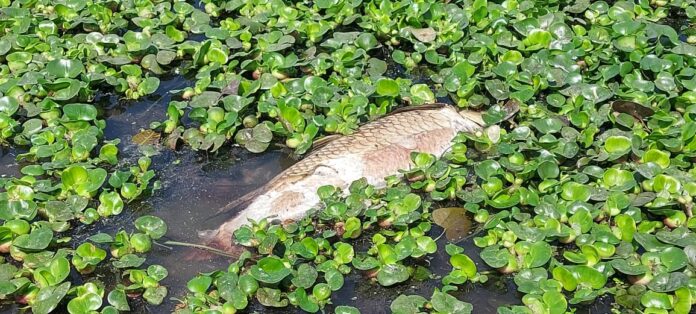 मरी पड़ी मछलियों से दूषित हो रहा पौराणिक सरोवर का पानी