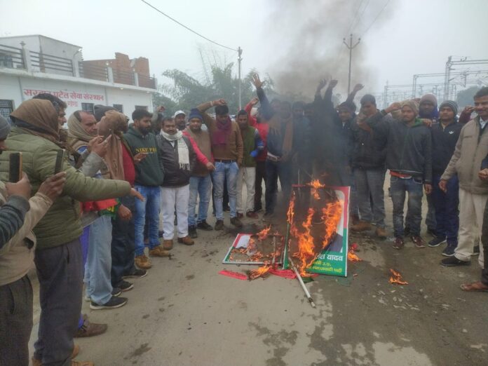 समाजवादी पार्टी का टिकट न मिलने पर समर्थको ने फूंका अखिलेश यादव का पुतला