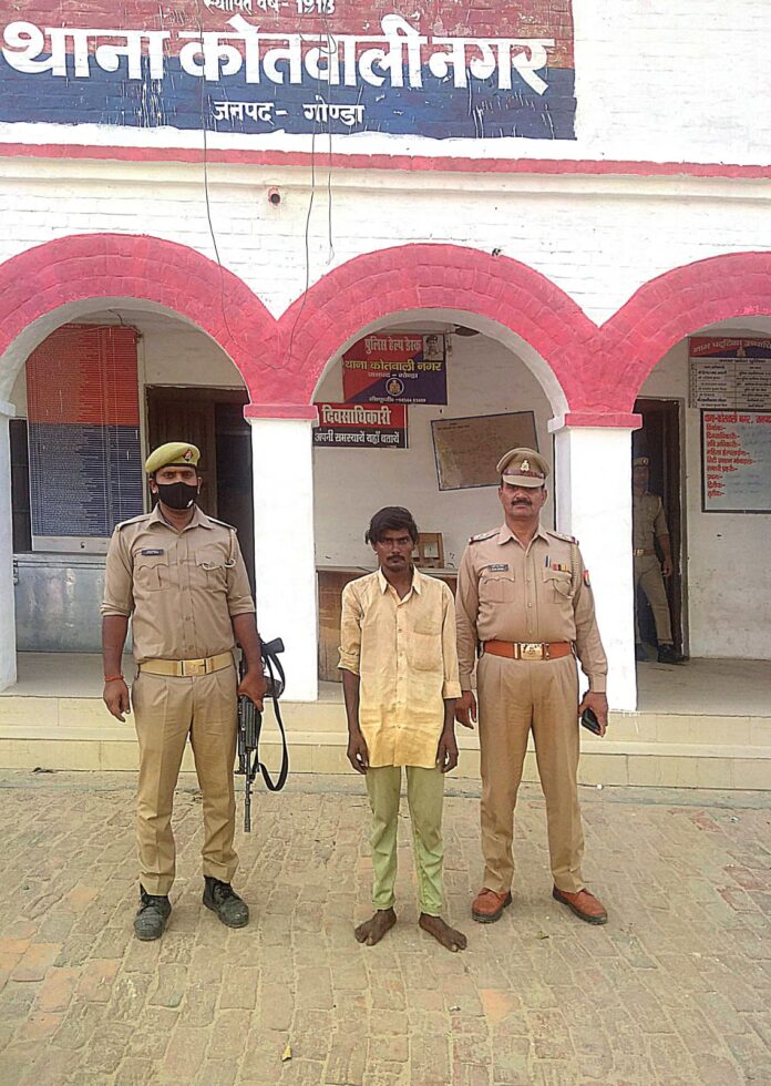 गोण्डा थाना को0 नगर क्षेत्र के अंतर्गत दिनांक 23/24.04.2022 की रात्रि सुनील कुमार गौतम पुत्र गंगाराम निवासी कोरी पुरवा उम्मेदजोत थाना कोतवाली नगर जनपद गोण्डा की पड़ोस के रहने वाले राजिंदर प्रसाद पुत्र कल्लू राम द्वारा सिर पर फावड़े से वार कर हत्या कर दी गयी थी। मृतक की मां की तहरीर पर थाना को0 नगर में मु0अ0सं0 261/22 धारा 302 भादवि का अभियोग पंजीकृत किया गया। पुलिस अधीक्षक गोण्डा संतोष कुमार मिश्रा द्वारा प्रकरण को संज्ञान में लेकर तत्काल आरोपी अभियुक्त की जल्द से जल्द गिरफ्तारी करने के निर्देश प्र0नि0 को0 नगर को दिए थे।