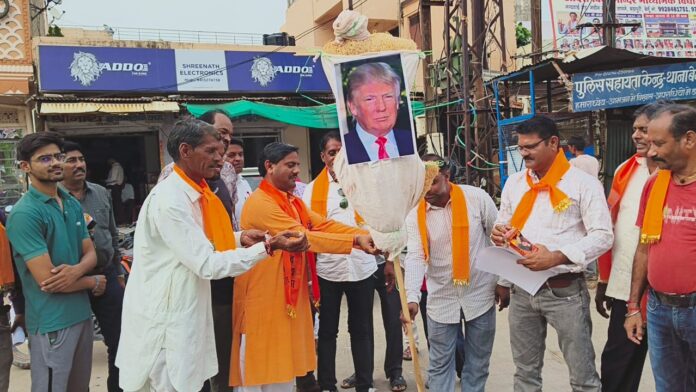 इस विरोध प्रदर्शन में जिला संयोजक श्यामलाल धाकड़, कार्यालय प्रमुख रामलाल धाकड़ सहित कई कार्यकर्ता मौजूद रहे। प्रदर्शनकारियों ने अमेरिकी नीतियों के खिलाफ नारे लगाए और भारत में स्वदेशी उद्योगों को बढ़ावा देने की अपील की।
