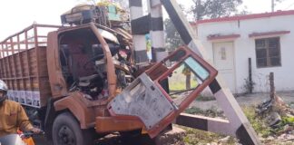 अनियंत्रित डीसीएम ने हाइट गेज बैरियर के ख़म्भे से टकराकर हुआ...