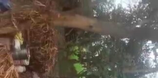 तेज आंधी से छप्पर के घर पर गिरा पेड़ बाल बाल...