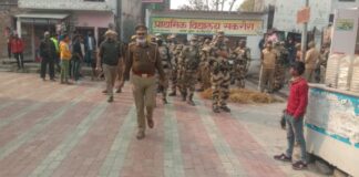 पुलिस, पीएसी एवं अर्धसैनिक बल के जवानों के साथ अधिकारियों ने...