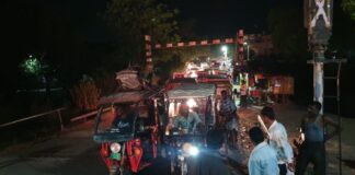 करनैलगंज हुजूरपुर मार्ग पर रेलवे क्रॉसिंग में लगता है लंबा जाम