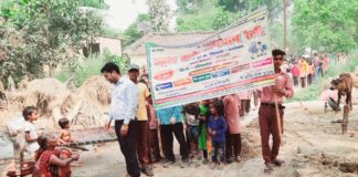 स्कूल चलो अभियान के तहत लोगों को जागरूक करते शिक्षक अरुण...