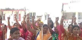 महिला कार्यकर्ताओं ने अपनी मांगों को लेकर प्रदर्शन किया