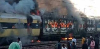 दिल्ली जाने वाली ट्रेन में लगी आग ट्रेन के दो डिब्बे...