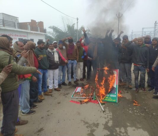 समाजवादी पार्टी का टिकट न मिलने पर समर्थको ने फूंका अखिलेश यादव का पुतला