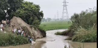 नहर फ़टने से गांव में घुसा पानी,गांव में बाढ़ जैसे हालात
